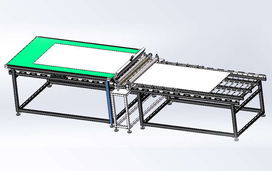 本生產(chǎn)線依據(jù)用戶需求,進(jìn)行“量身”設(shè)計,由層壓前鋪設(shè)傳輸線;通過不同機(jī)構(gòu)的傳輸、轉(zhuǎn)運(yùn)、變向、定位、旋轉(zhuǎn)/釋放實現(xiàn)組件封裝過程的流水化操作,可提高單位組件生產(chǎn)效率。